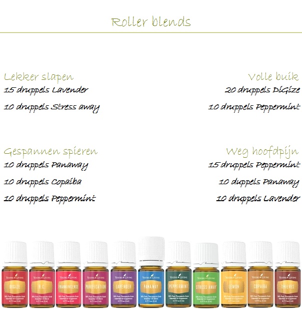 Hieronder de recepten van een paar van mijn favoriete roller blends.